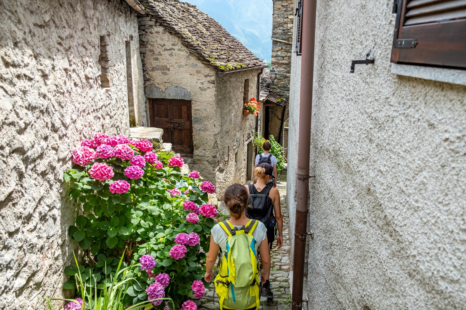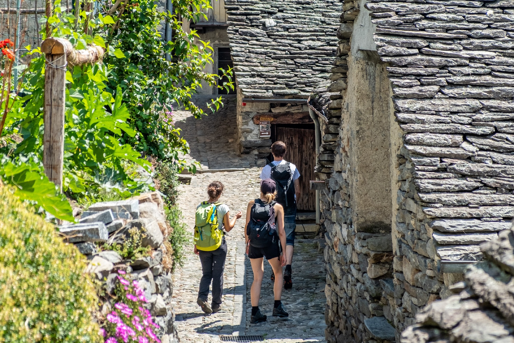 Der letzte Teil des Stockalperwegs beginnt im Bognancotal. Erst schlängelt sich die Route durch die Weiler Bognancos – im Streudorf erinnert heute nur noch wenig an seine glanzvolle Vergangenheit als blühender Thermalkurort. Am linken Talhang führt nun ein traumhaft schöner Maultierweg durch malerische, verschlafene Siedlungen mit ihren typischen Steinhäusern und prunkvollen Kirchen.