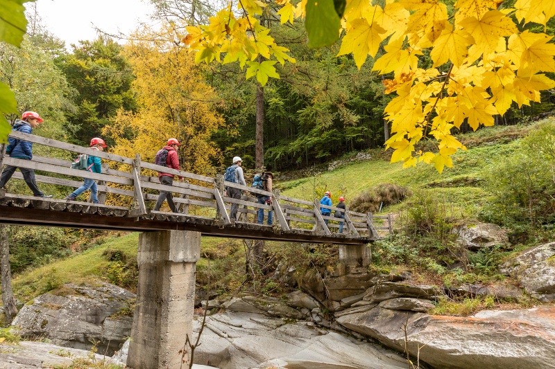 Auf der rechten Talseite wanderst du nun an den Ruinen von historischen Goldminen vorbei. Auch der einzige Buchenwald im Oberwallis zeugt hier vom einstigen Goldrausch: Diese Bäume wuchsen nach, nachdem die Arbeiter den Berg für den Erzabbau abgeholzt hatten. Nach dem Waldstück gelangst du anschliessend auf dem originalen Saumpfad hinunter nach Gondo. Hier leben nur wenige Einwohner. Aber es gibt zwei Hotels und Restaurants, ein Museum und drei Tankstellen.