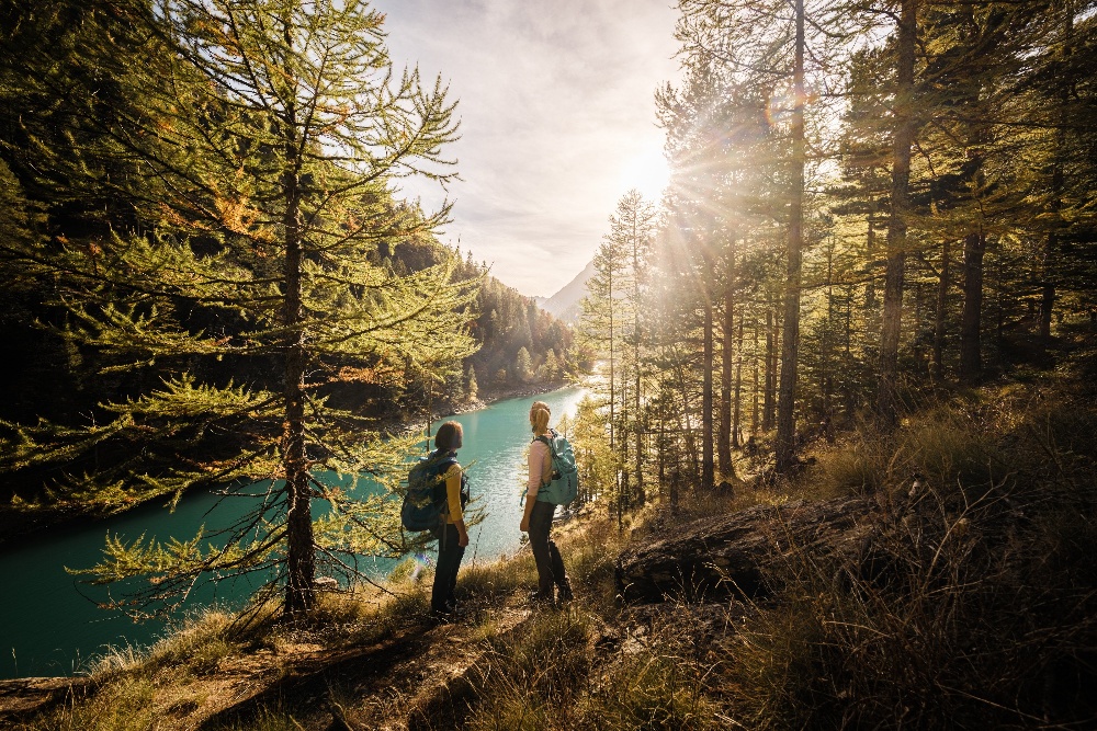 Auf «Furggu» angekommen folgt ein gemächlicher Abstieg durch Lärchenwälder, bis das Terrain wieder flacher wird und der Sera-Stausee in Sicht kommt. Dieser liegt mitten im wunderschönen wilden Zwischbergental und etwas unterhalb des Weilers Bord, wo sich neben dem Berggasthof auch eine Publicar-Haltestelle nach Gondo befindet.