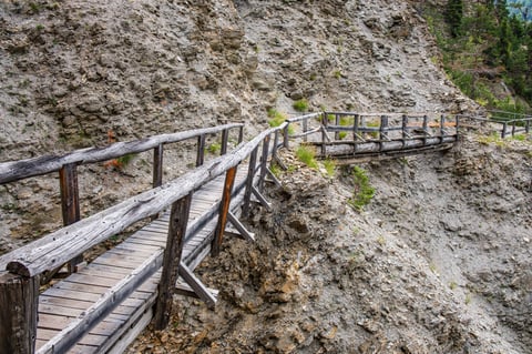 Am Stockalperschloss vorbei führt der Weg die alte Burgschaft hinauf und weiter zur Riedbachstrasse. Auf dem sogenannten Römerweg erreichst du durch offenes Wiesland über Lingwurm den Weiler Brei. Durch den «Gfalte Wald» nach «Chalchofe» führt ein unter Stockalper in den Felsen gehauener und 1992 in der alten Linienführung wiederhergestellter Hangweg. Hier bietet sich dir eine eindrückliche Aussicht in die Saltinaschlucht und ins Rhonetal. Der alten Napoleonstrasse entlang bringt dich ein Verbindungsstück zum unterhalb der Fahrstrasse gelegenen Stockalperweg.